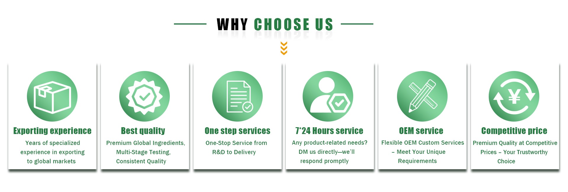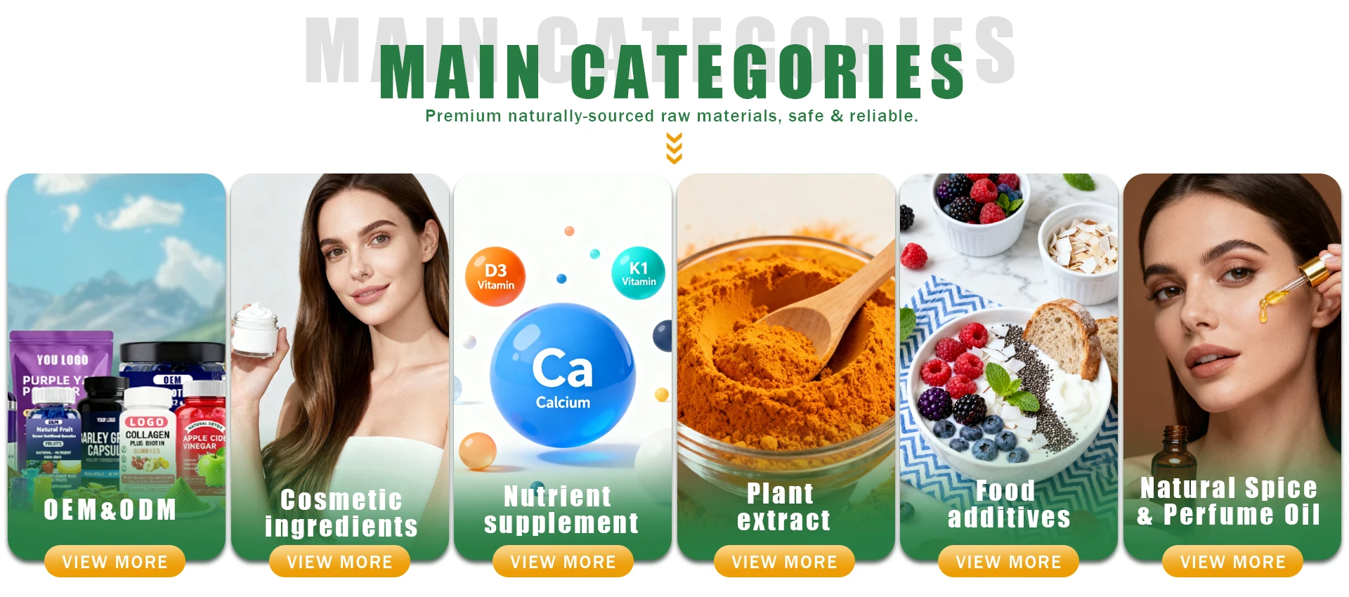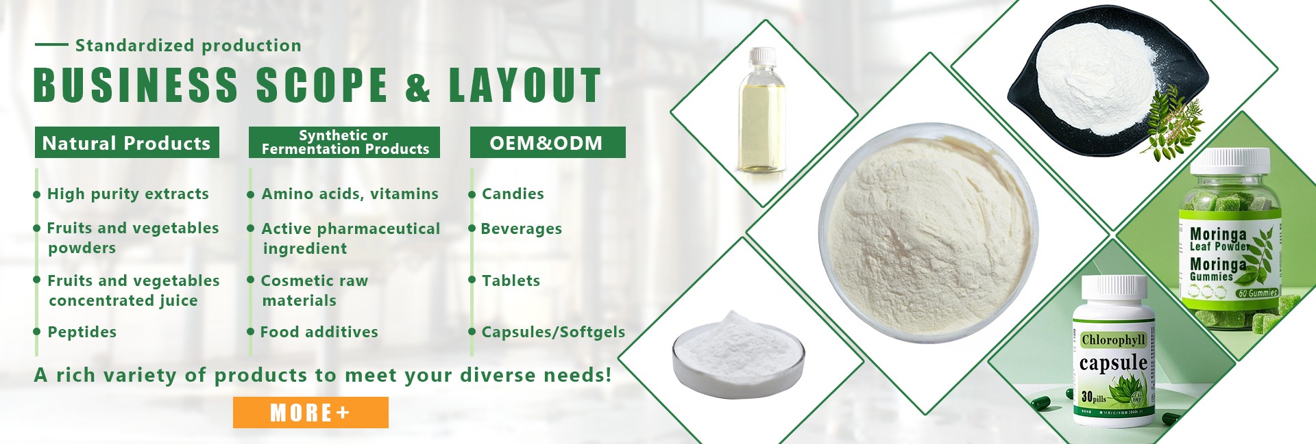 Principaux produits : Extrait d'igname, acide kojique, boissons solides, vitamine B3, extrait de Wolfberry